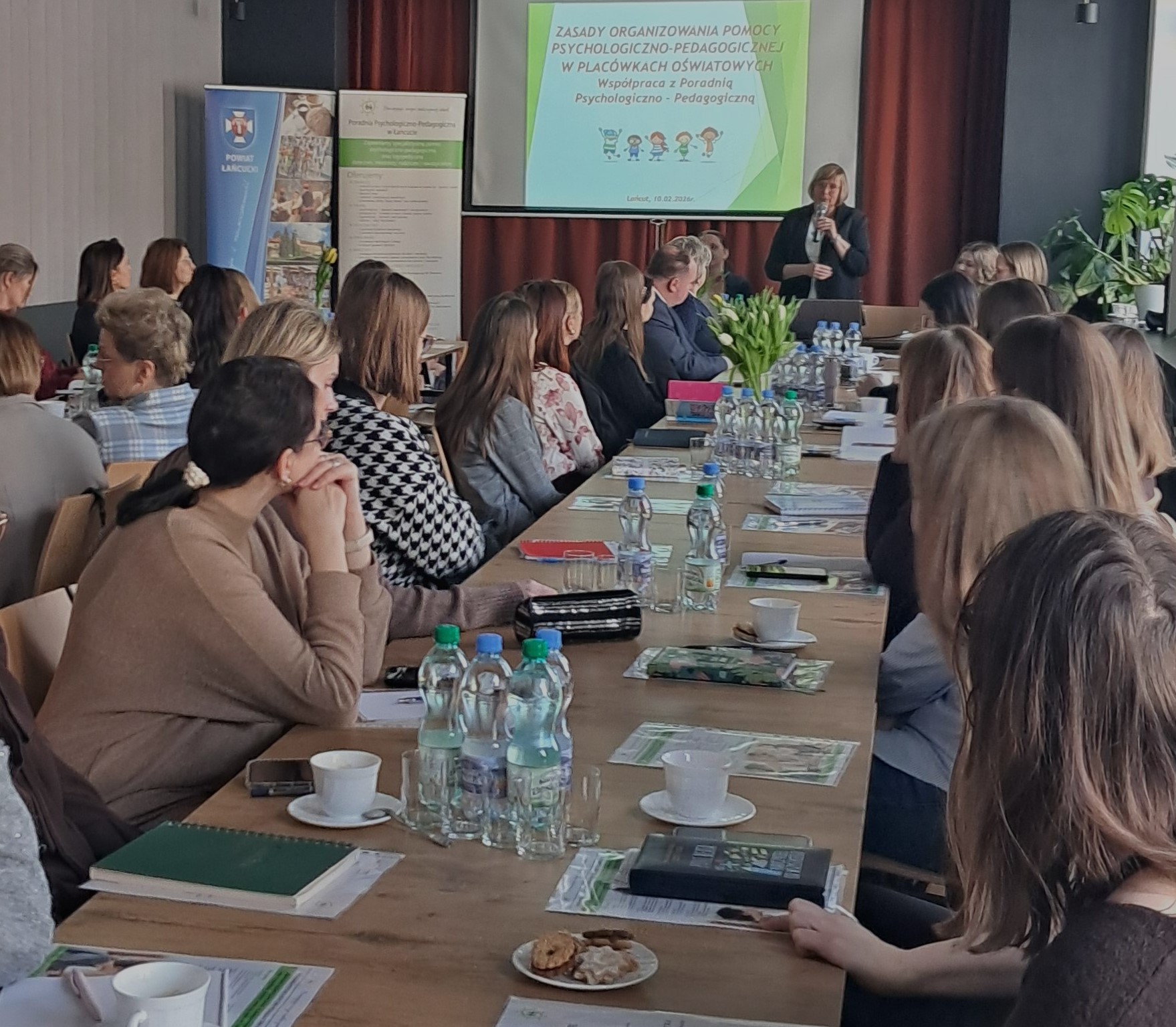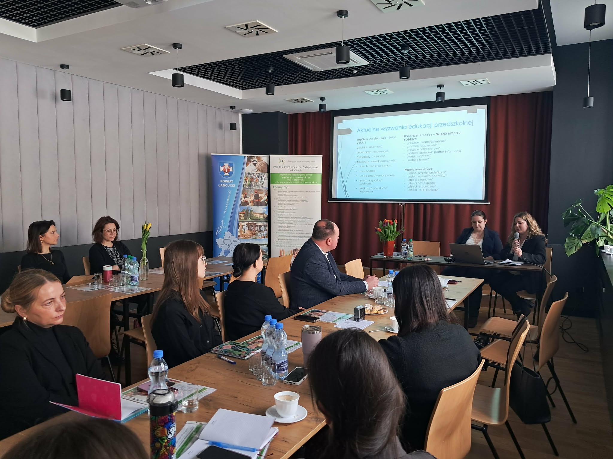 W dniu 10.02.2026 r. odbyło się informacyjno-szkoleniowe spotkanie zorganizowane przez Poradnię Psychologiczno-Pedagogiczną w Łańcucie na temat „Skrining rozwoju małego dziecka – wdrażanie diagnozy funkcjonalnej w przedszkolach”. Spotkanie otworzyli: Wicestarosta Łańcucki Pani Barbara Pilawa-Kraus oraz Naczelnik Wydziału Edukacji Powiatu Łańcuckiego Pan Robert Szajnar. Spotkanie poprowadziły: dr Elżbieta Dolata – Dyrektor Poradni Psychologiczno-Pedagogicznej, mgr Magdalena Kozera – pedagog oraz mgr Izabela Zańko – psycholog. Spotkanie poświęcone było zagadnieniom związanym z diagnozą funkcjonalną małego dziecka oraz jej praktycznym wdrażaniem w placówkach wychowania przedszkolnego. Omówiono znaczenie wczesnego rozpoznawania potrzeb rozwojowych dzieci oraz rolę przedszkola w procesie obserwacji, diagnozy i planowania wsparcia. Podczas spotkania przedstawiono i omówiono następujące metody diagnozy funkcjonalnej: skrining rozwoju małego dziecka jako narzędzie wczesnego wykrywania trudności rozwojowych, wywiad oparty na rutynach dnia codziennego, uwzględniający funkcjonowanie dziecka w naturalnym środowisku, ekomapę rodziny jako sposób analizy relacji i zasobów środowiskowych dziecka. Zwrócono uwagę na znaczenie współpracy specjalistów z nauczycielami oraz rodzicami w procesie diagnozy i planowania oddziaływań wspierających rozwój dziecka. Podkreślono, że diagnoza funkcjonalna powinna mieć charakter ciągły i być ukierunkowana na praktyczne działania w codziennej pracy z dzieckiem. Omówione zostały również aktualne przepisy prawa oświatowego regulujące kwestie diagnozy, pomocy psychologiczno-pedagogicznej oraz obowiązki przedszkoli w zakresie wspierania rozwoju dzieci. Celem spotkania było przekazanie informacji służących ujednoliceniu działań diagnostyczno-wspierających, a tym samym zapewnienie wysokiej jakości opieki, wychowania i pomocy udzielanej dzieciom w placówkach na terenie naszego powiatu. Wydarzenie odbyło się w Powiatowym Zespole Placówek Oświatowych w Łańcucie.