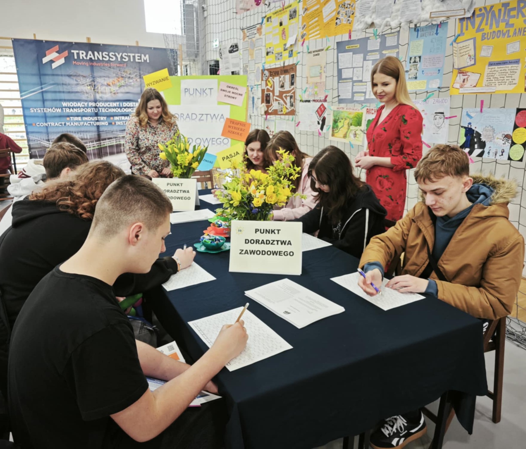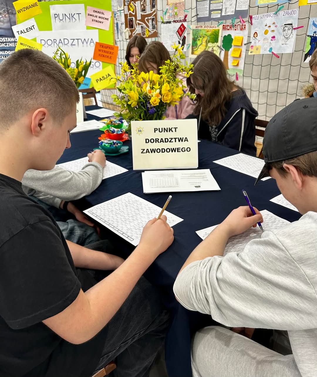 Stoisko doradców zawodowych cieszyło się bardzo dużym zainteresowaniem. Uczniowie chętnie zasięgali porad dotyczących planowania ich dalszej drogi edukacyjno-zawodowej.