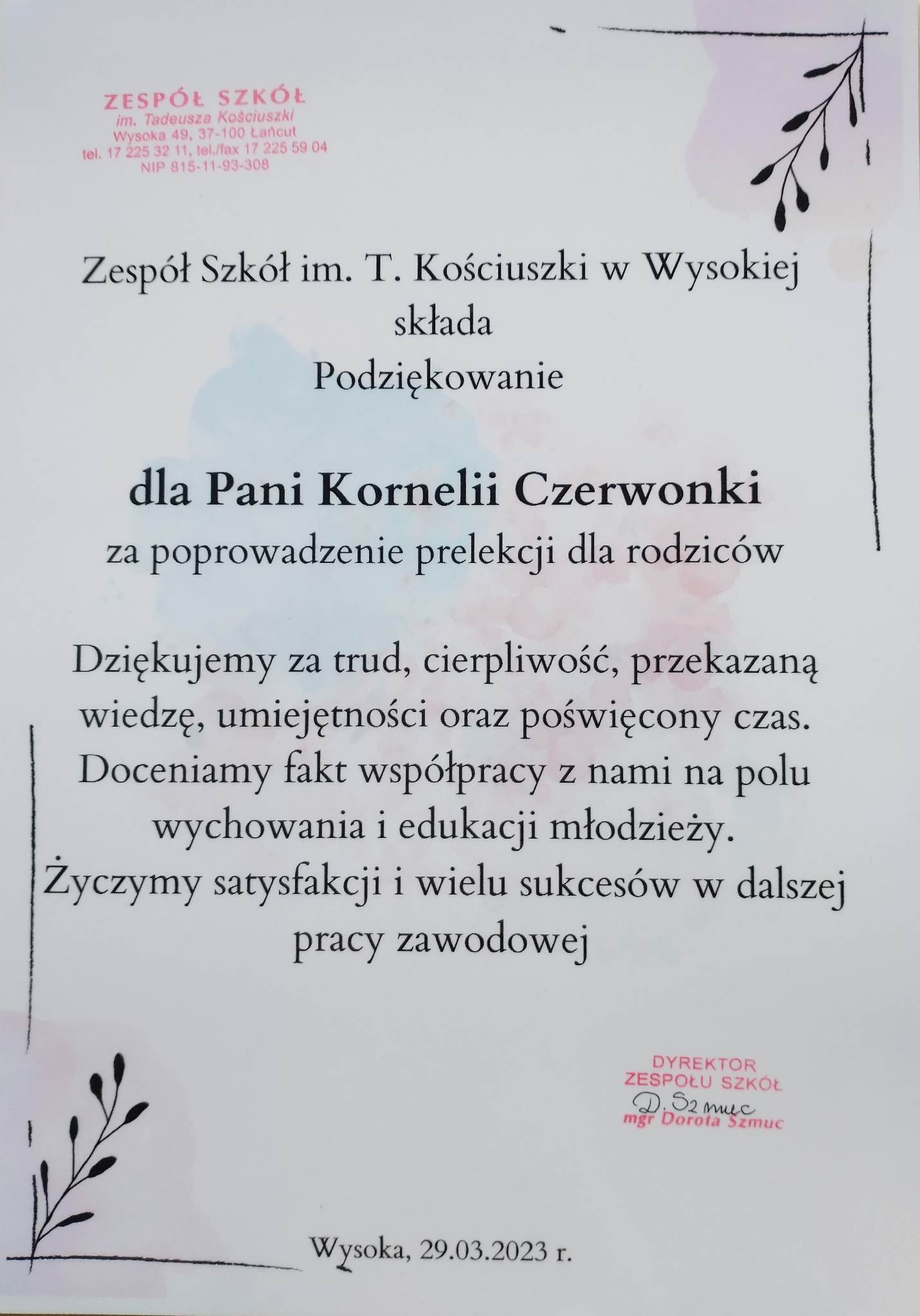 W dniu 29.03.2023 r. w Zespole Szkół im. Tadeusza Kościuszki w Wysokiej odbyła się prelekcja dla rodziców pt.: „Młodzież w sieci”.